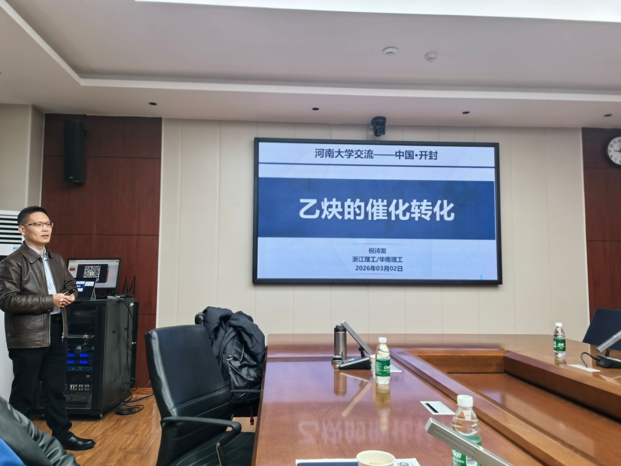 220会议室做了题为“乙炔的催化转化”的学术报告,本次报告由徐元清院长主持。在报告中,祝诗发聚焦于乙炔这一重要化工原料的应用拓展,系统阐述了如何将大宗原料乙炔高效转化为高附加值精细化学品,首次实现乙炔的1,1-聚合反应,成功解决了高分子化学领域长达半个世纪的合成难题,有效攻克了乙炔易燃易爆、易自聚的反应瓶颈。祝诗发的研究不仅为乙炔的催化转化提供了全新思路,也为功能共轭高分子材料的开发开辟了新的方向。整场报告内容丰富、逻辑严谨,祝诗发讲解深入浅出、思路清晰,生动展现了其课题组在乙炔转化领域的前沿成果。报告结束后,祝诗发与现场师生进行了深入的学术交流,耐心解答各类问题,并结合自身科研经历分享了宝贵的心得体会,现场学术氛围浓厚,交流气氛热烈。